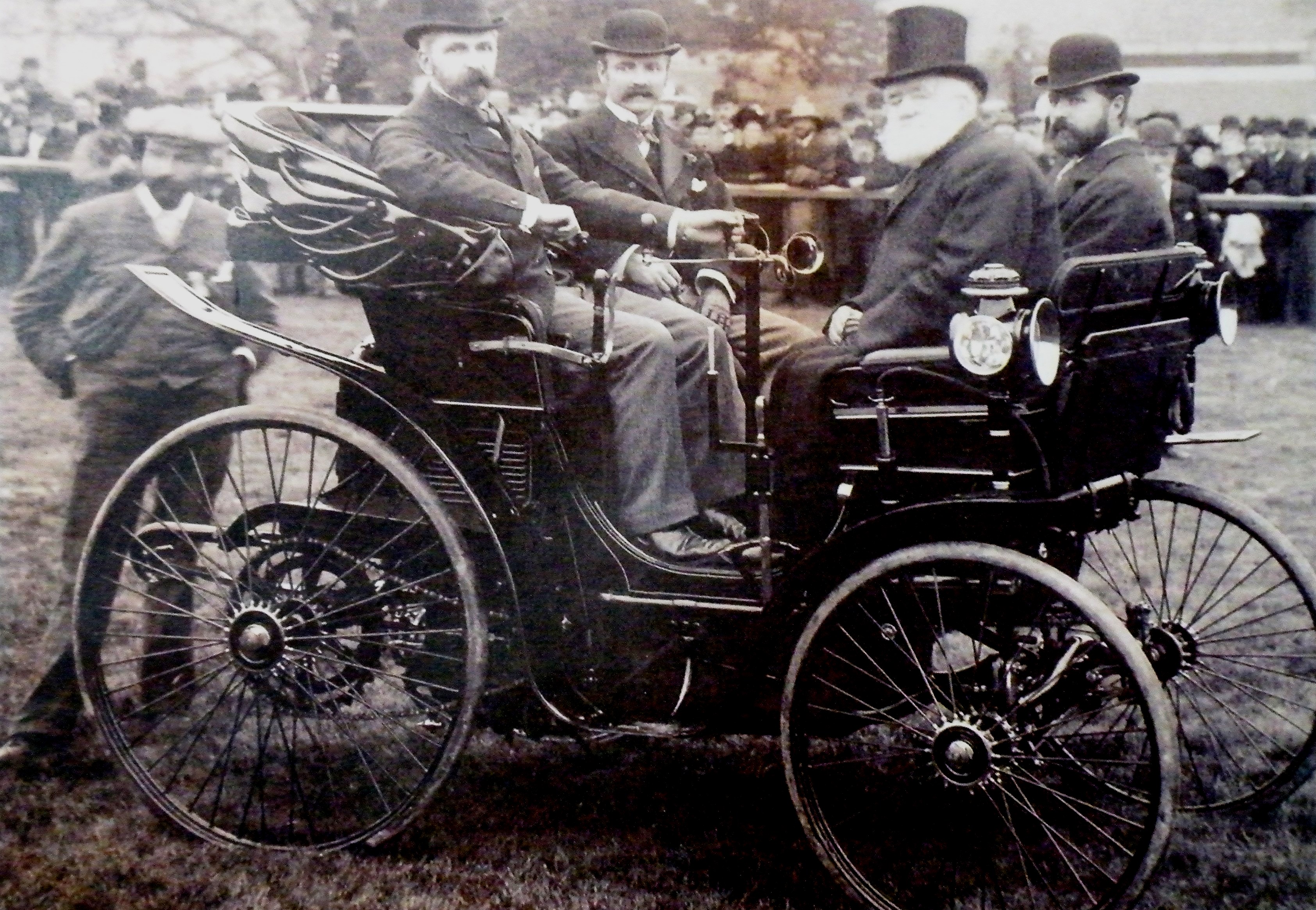 Shown here in his Peugeot, David Lionel Salomons was a pioneering motorist. He purchased and drove the second car in Britain, and built the first garage in Britain at his home near Tunbridge Wells. In 1895 he organised the country’s first motor show: the Tunbridge Wells Horseless Carriage Exhibition.